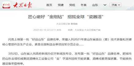 歷經(jīng)多年的拼搏創(chuàng)新,金塔已經(jīng)成為規(guī)模化、成套化、技術(shù)化及節(jié)能化的酒精生產(chǎn)及廢液處理裝備專業(yè)制造商,是《酒精蒸餾塔》 《糠醛水解鍋》《糠醛蒸餾塔》等國家行業(yè)標準的制定者。以“金”字為商標的酒精生產(chǎn)及其節(jié)能環(huán)保設(shè)備是國內(nèi)客戶尤其是知名大型酒業(yè)公司信賴的品牌,與中國酒業(yè)的龍頭企業(yè) 五糧液集團三次合作,深得好評和信賴,與天冠集團、阜豐集團、吉良集團等大型燃料乙醇巨頭攜手,推動了燃料乙醇技術(shù)裝備的進步,向國內(nèi)28個省市區(qū)近2000家客戶提供了產(chǎn)品和技術(shù)服務(wù),建立了深厚的合作基礎(chǔ),并出口東南亞、東歐、非洲、南美等多個國家。